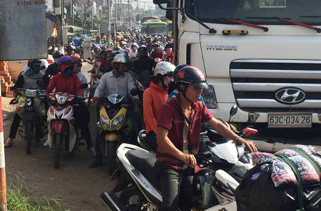 Ùn tắc giao thông vì xe tải dừng đỗ suốt 16 giờ. Ảnh: Dân Việt. |