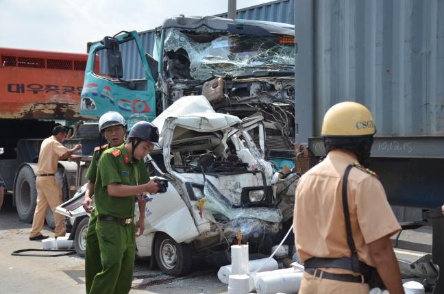 Sau đó, xe container tiếp tục đâm vào xe bán tải mang BKS: 51A-661.25 do tài xế Nguyễn Văn Bình (54 tuổi) điều khiển, khiến xe bán tải lao về phía trước, dính chặt vào xe container mang BKS: 51C-764.31 chạy phía trước, chiếc xe này lại tiếp tục đâm vào 1 xe khác. Vụ tai nạn khiến tài xế Bình tử vong, thi thể kẹt cứng trên vô lăng.
