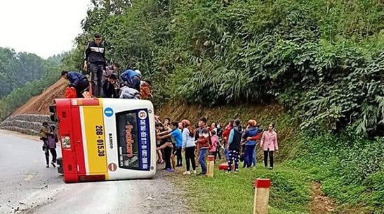 Thái Nguyên: Vào cua gấp, xe buýt lật nghiêng giữa đường khiến 4 người bị thương