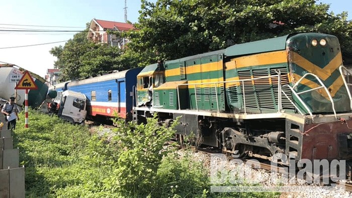 Vào thời điểm trên, xe bồn trộn bê tông BKS 99C - 136.47 lưu thông từ trường tiểu học Hương Lạc (huyện Lạng Giang, tỉnh Bắc Giang) ra QL1. Khi băng qua đường sắt, do khuất tầm nhìn bị tàu hỏa tông vào đuôi khiến chiếc xe bồn quay ngang.