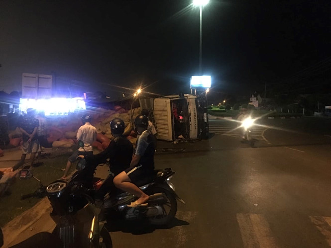 Khi đến vòng xoay ngã 4 Chợ Gạo, thuộc địa bàn xã Long Bình Điền, H.Chợ Gạo, tài xế Bình cho xe ôm cua để đi theo hướng về TP.Mỹ Tho thì bất ngờ xe tải lật ngang. Tài xế Bình và phụ xe bị thương, được người dân đưa vào bệnh viện cấp cứu. Tại hiện trường, xe tải lật ngang, hàng trăm bao lúa rơi xuống đường.