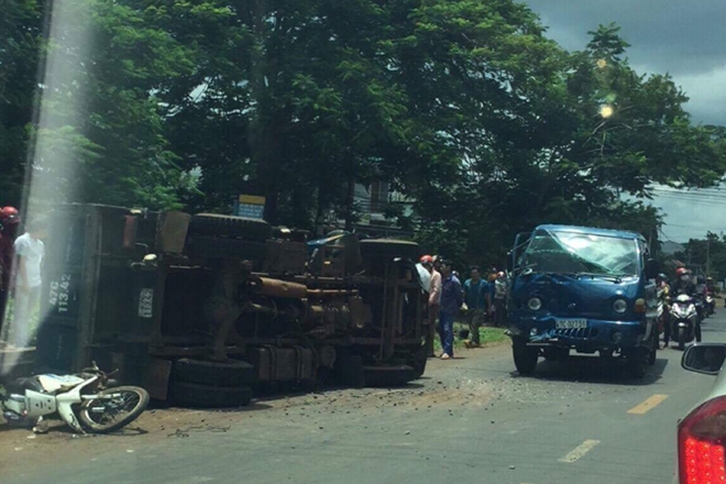 Người phụ nữ và 2 con nhỏ bị xe chở vật liệu lấn làn tông thương vong