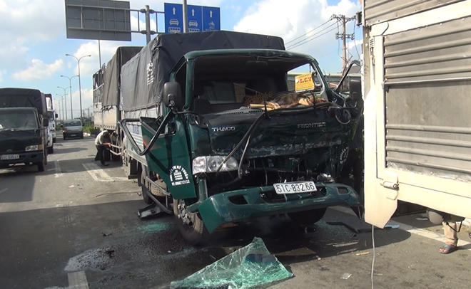 Trong đó xe tải 2,1 tấn biển số 51C-832.66 của tài xế Phạm Khắc Hải (28 tuổi, quê Thanh Hóa) hư hỏng nặng nhất móp đầu, vỡ kính chắn gió. Tài xế kẹt trong cabin. Người dân phải nhờ đến một xe tải cẩu khác kéo cabin về phía trước tạo khoảng trống giải cứu tài xế Hải ra ngoài chuyển vào bệnh viện cấp cứu với hai chân bị thương nặng.