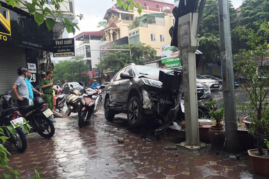 Vào thời điểm trên, xe ô tô BKS 30A 04595 đi từ đường Phan Đình Phùng về đường Hoàng Hoa Thám - Ngọc Hà thì va chạm với xe tay ga BKS 29V7 7689 đi cùng chiều, xe máy BKS 29AA 27028 đi phía sau không kịp tránh cũng bị va chạm vào ô tô.
