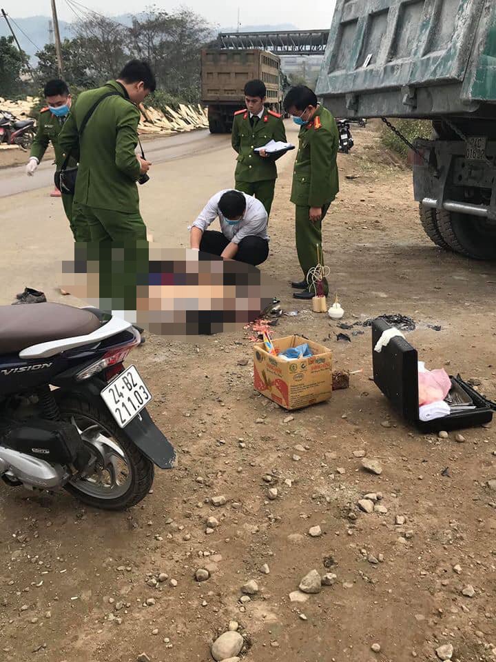 Tại hiện trường, thi thể nạn nhân không còn nguyên vẹn, xe máy bị hư hỏng nặng, đồ đặc vương vãi khắp nơi.
