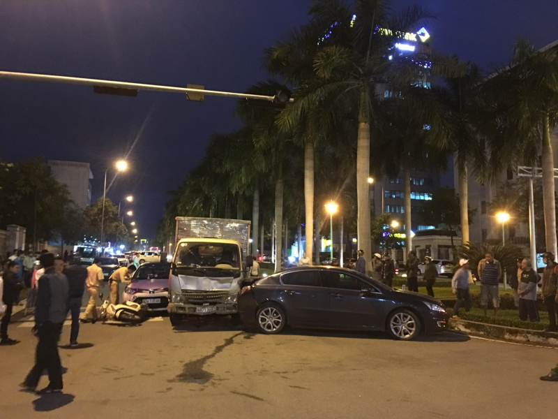 Khi đến ngã tư giao với đường Núi Thành, xe tải trên bất ngờ tông văng 2 ô tô 4 chỗ mang BKS 92A-135.86, 43A147.73 và 1 xe máy đang dừng chờ đèn đỏ.