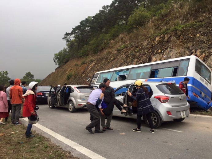 Xe ô tô mất lái đâm vào vách núi khiến nhiều người thương vong