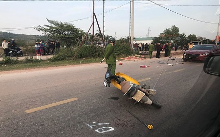 Theo đó, 14h30 chiều cùng ngày tại Km279+600 trên QL18, xe máy do anh L.V.H (SN 1993) điều khiển, phía sau chở anh L.V.V (SN 1986, cả hai cùng trú tại xã Liên Vị, thị xã Quảng Yên) khi lưu thông đã húc trực diện vào xe máy BKS 14K1-016.58 do chị N.T.N (SN 1994, trú tại thôn 6, Hải Đông, TP. Móng Cái) đi hướng ngược lại.