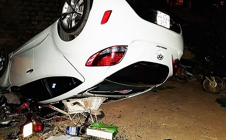Cú húc mạnh khiến xe máy anh H văng sang làn đường khác rồi húc tiếp vào xe ô tô BKS 14A - 148.03 do chị Đ.T.H (SN 1988, quê huyện Hải Hà) cầm lái.