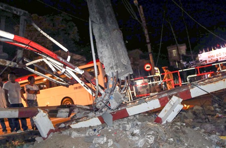 Tri thức trực tuyến đưa tin, khoảng 21h30 ngày 6/6, tại điểm gác chắn tàu hỏa đầu đường Lê Hồng Phong (TP Nha Trang, Khánh Hòa), một chiếc xe ben mất lái đã tông thẳng vào gác chắn tàu hỏa, khiến một nhân viên đường sắt bị thương.