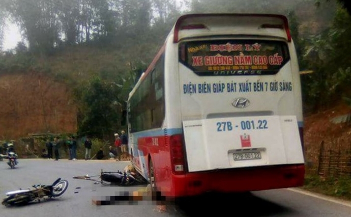 Đúng lúc này, chiếc ô tô khách giường nằm mang biển kiểm soát 27B – 001.22 của nhà xe Điện Lý do anh Vũ Mạnh Tưởng (SN 1969, trú tại xã Mông Hóa, huyện Kỳ Sơn, tỉnh Hòa Bình) điều khiển đi tới đè qua người chị Ng. khiến người này tử vong tại chỗ, anh Xứng và anh Thoan đều bị thương.