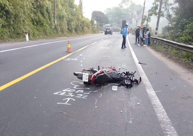 Vào khoảng 6h45 ngày 7/2, trên Quốc lộ 20 (đoạn qua khu vực đèo Chuối, thuộc thị trấn Madagui, huyện Đạ Huoai, tỉnh Lâm Đồng) xảy ra vụ tai nạn giữa xe máy và xe container khiến hai thanh niên thương vong.