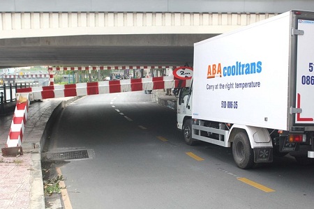Trong lúc ôtô chạy qua gầm cầu Bông (phường Tân Định, quận 1), thùng xe vướng vào thanh giới hạn chiều cao. Thanh sắt cao 2 m, ngang khoảng 7 m ngay lập tức bị kéo đổ, đè lên nóc cabin của phương tiện. Tài xế bị trầy xước hạ kính ôtô bên phải chui ra ngoài.