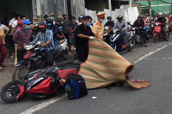 Anh Nam ngã xuống đường và bị bánh sau xe tải cán qua đầu tử vong tại chỗ. Xe tải chạy thêm khoảng 20m thì dừng lại.