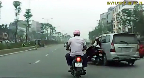 Công an và trên mạng xã hội đang truy tìm người lái chiếc xe Innova sáng 7/11 đã bất ngờ chuyển làn, húc ngã một cô gái đi xe máy rồi bỏ chạy. Sự việc xảy ra lúc 8h30 trên đường Võ Chí Công, Tây Hồ, Hà Nội. Theo đó, tài xế này đã chạy xe với tốc độ cao trên đường Võ Chí Công, bất ngờ chuyển làn, đâm vào cô gái xe máy cùng chiều. Trong khi đó, cô gái vừa từ cầu vượt xuống, đang xi nhan xin đường về làn xe máy. Cô gái sau đó bị ngã, chưa kịp hoàn hồn đã bị một người đàn ông đi xe máy cán tiếp do không kịp phanh. Rất may, cả cô gái và người đàn ông đều chỉ bị xây xát nhẹ.
