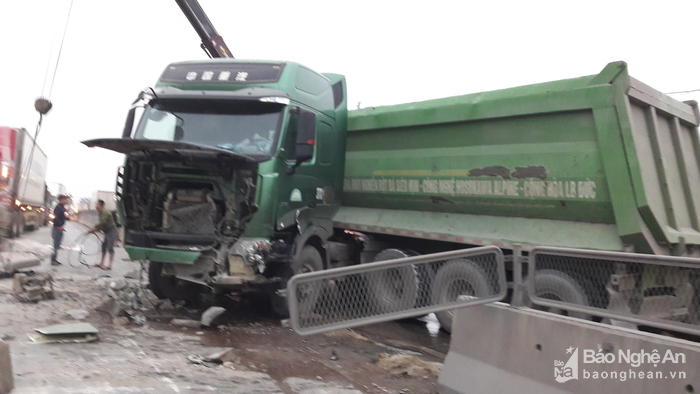 Vào khoảng 16h50 phút ngày 8/12 trên QL1A đoạn giáp ranh giữa hai xã Diễn Hồng và Diễn Yên huyện Diễn Châu, chiếc xe ô tô tải (chưa rõ BKS) đang lưu thông theo hướng Vinh – Hà Nội đã bất ngờ lao vào giải phân cách giữa đường, húc đố khoảng 5m giải phân cách.