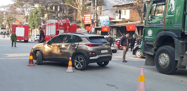 PV có mặt tại hiện trường ghi nhận: xe ô tô 5 chỗ Hyundai, hiệu KONA (BKS 22A-104.07) đi đầu bị móp méo dọc thân xe bên trái; xe ô tô tải, hiệu HOWO màu xanh (BKS 22C-072.87) bị xây xát nhẹ phần đầu bên phụ.