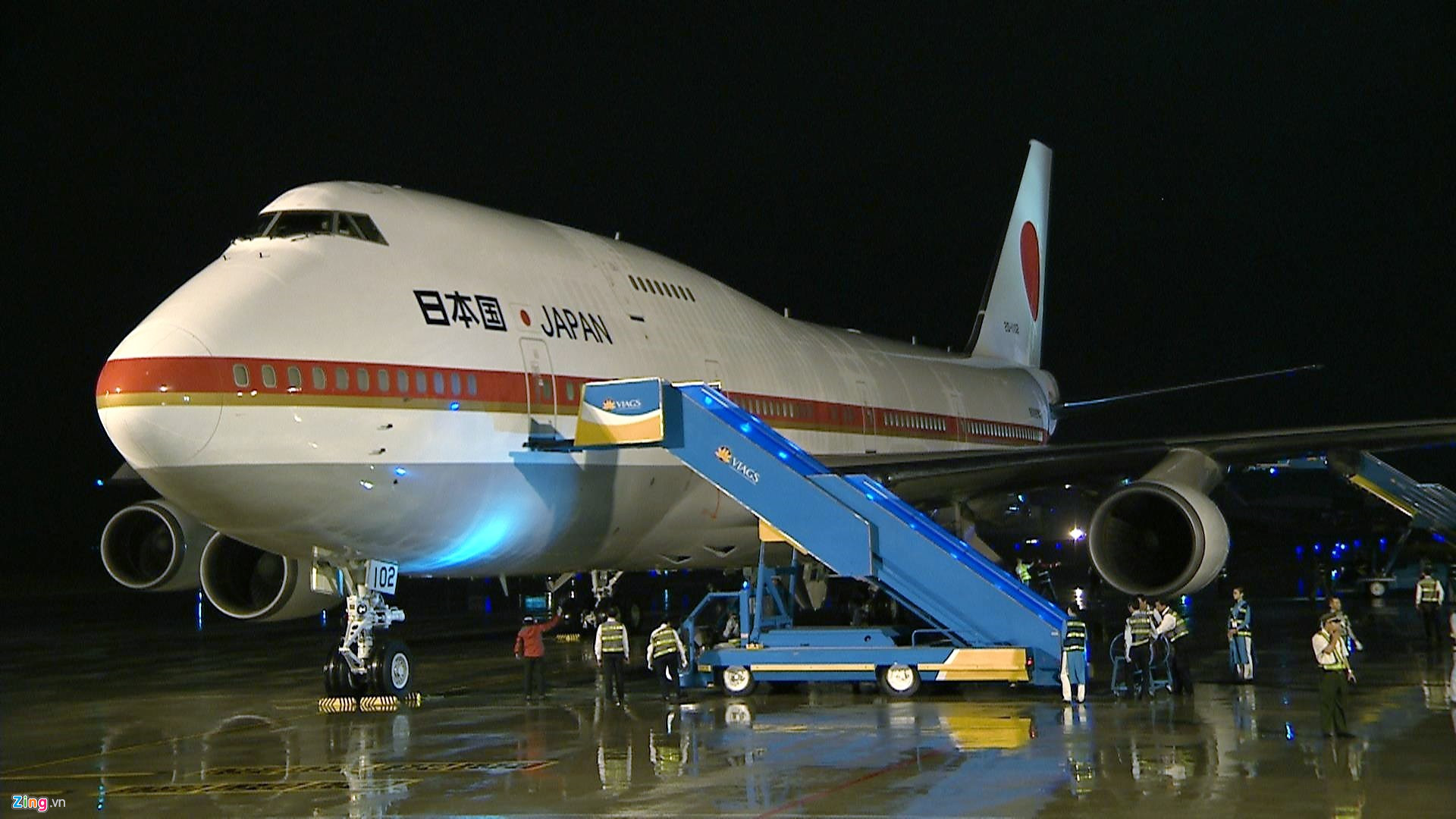 Chiếc Boeing 747 được mệnh danh là chiếc "Không Lực Một" phiên bản của Nhật Bản chở Thủ tướng Abe công du nước ngoài.