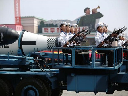 Quân đội Triều Tiên diễu binh tại thủ đô Bình Nhưỡng (Ảnh: Reuters) |