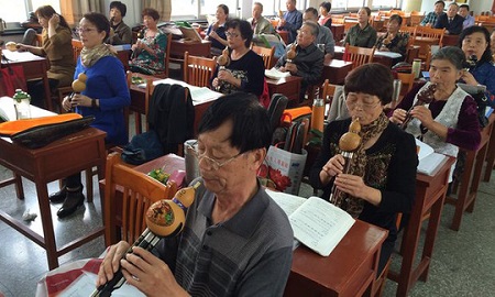 Các học viên học thổi sáo ở trường học dành cho người cao tuổi tại huyện Như Đông Ảnh: The Guardian |