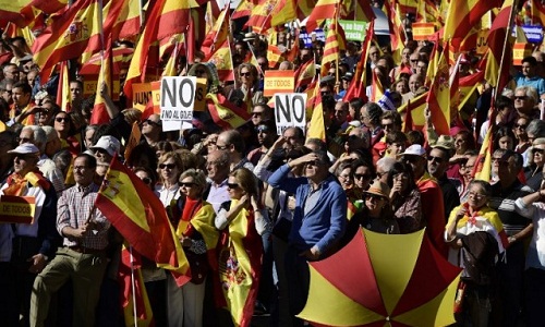 Người Tây Ban Nha biểu tình ở Madrid phản đối Catalonia tuyên bố độc lập. Ảnh: AFP. |