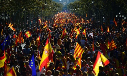 Báo VnExpress dẫn theo Reuters, ngày 29/10, hàng trăm nghìn người tuần hành trên đường phố Barcelona để phản đối việc Catalonia đơn phương tuyên bố tách khỏi Tây Ban Nha. Vẫy cờ Tây Ban Nha và hô vang câu khẩu hiệu "Mãi mãi Tây Ban Nha", những người biểu tình lấp kín nhiều con phố lớn ở thành phố Barcelona, thủ phủ Catalonia. Đây được cho là cuộc tuần hành lớn nhất ủng hộ Tây Ban Nha thống nhất kể từ khi cuộc khủng hoảng Catalonia nổ ra.