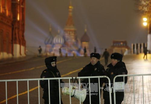 Cảnh sát Nga gác ở Quảng trường Thời đại tại Moskva. Ảnh: EPA/TTXVN |