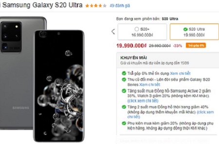 Galaxy S20 Ultra hiện đang giảm mạnh nhất trong số các mẫu smartphone đang giảm giá. |