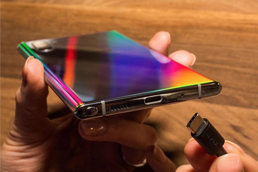 Giắc âm thanh 3,5 mm đã bị loại bỏ trên Galaxy Note 10 và Note 10 Plus. Ảnh: CNET |