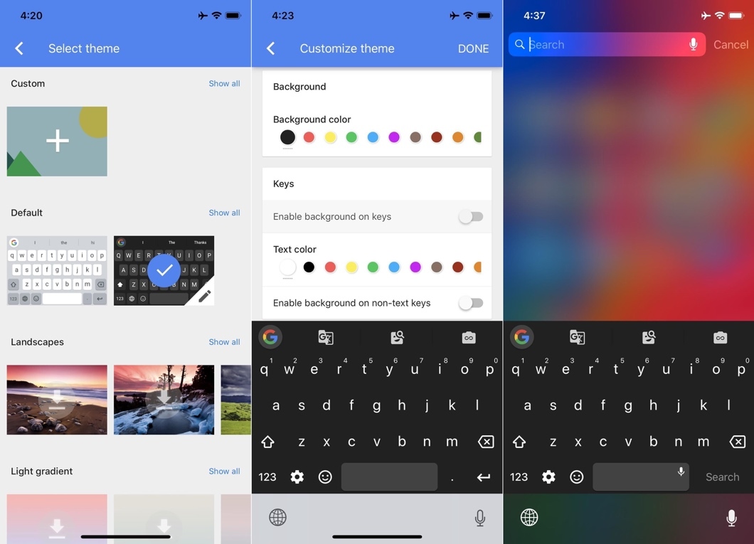 Trên iOS, giao diện sẽ tự động cập nhật sau khi bạn chọn nó. Tuy nhiên, bạn có thể bấm nút hình cây bút chì để tùy chỉnh giao diện theo ý muốn. Ở màn hình tùy chỉnh, bạn có thể thay đổi màu nền và màu phím của Gboard.