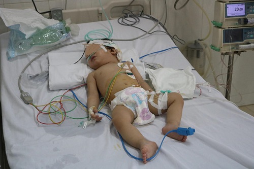 Cháu bé đang được điều trị tại bệnh viện trẻ em Hải Phòng - Ảnh: Vietnamnet |