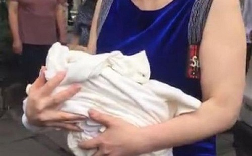 May mắn thay, đứa trẻ rơi vào một mái che ở tầng 2 nên không thiệt mạng. Như biết rằng bị mẹ bỏ rơi, đứa trẻ cất tiếng khóc thảm thiết, cố gắng gọi mọi người tới cứu.