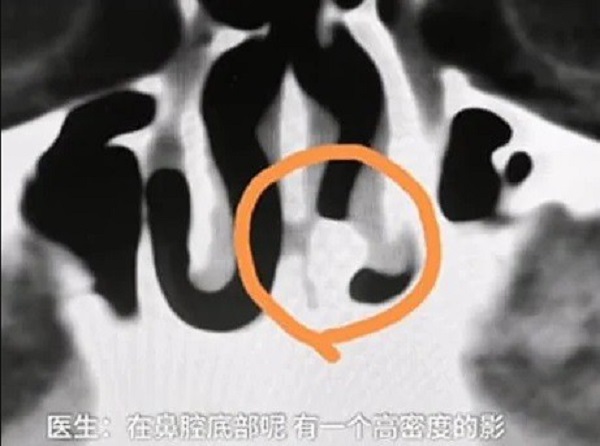 Zhang sau đó đã quyết định đến khám tại bệnh viện Đại học Y Cáp Nhĩ Tân. Qua hình chụp X-quang, bác sĩ Bai Zhibang thấy một dị vật có hình thù như chiếc răng trong mũi của bệnh nhân.