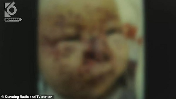 Mặt bé có khoảng 100 vết thương do chuột cắn - Ảnh: Đài phát thanh-truyền hình Côn Minh |