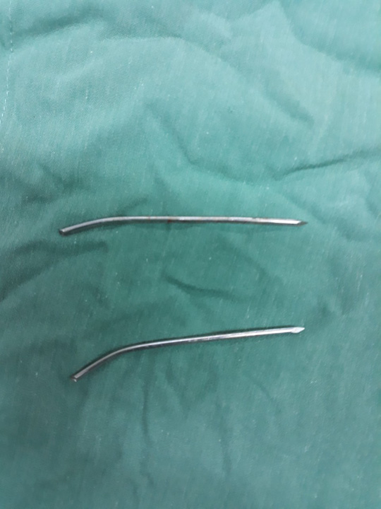 Hai cây đinh được các bác sĩ phẫu thuật lấy ra. |