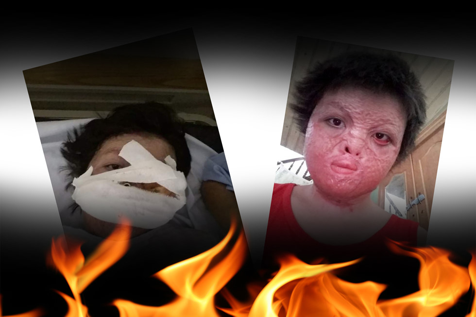 Trang rùng mình, kể trong nước mắt: “Mình đòi ly hôn để được giải thoát, hắn không chịu, gia đình 2 bên cũng gặp nhau, khuyên răn nên nghĩ cho tương lai 2 đứa trẻ. Một lần, sau buổi họp gia đình, hắn kéo mình vào phòng và khóa trái cửa lại. Lần này không chỉ là những trận đòn, hắn còn tưới xăng xuống nền nhà và cả người mình. Mình hoảng hốt nhưng không làm sao được, vì hắn cầm dao đe dọa. Ngọn lửa bùng lên, mình chỉ kịp la hét, cố chạy ra cửa. Thấy được mọi người thì lịm đi”.