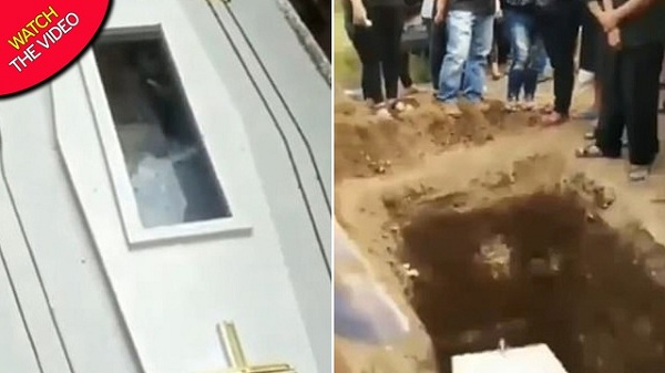 Chỉ vài giây sau khi cầu nguyện, bàn tay trong quan tài đã vẫy vẫy qua ô kính.