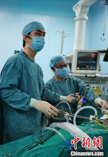 Cuộc phẫu thuật cắt bỏ thận phụ bị viêm cho bé trai có 3 quả thận do các bác sĩ của Bệnh viện Tongji, Vũ Hán, Trung Quốc thực hiện. (Ảnh: Chinanews). |