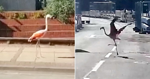 Con chim màu hồng với cặp chân dài dường như không hề bị ai cản trở trong cuộc phiêu lưu của nó, đã đi qua hàng rào xây dựng trên một con đường thay vì rảo bước trong môi trường sống tự nhiên của nó ở vùng đầm lầy. Những người canh gác sở thú đã có mặt trong vòng vài phút và cố gắng đưa nó trở lại nơi trú ngụ.