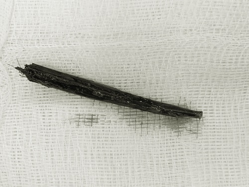 Thanh gỗ nhựa xiên thịt được các bác sĩ lấy ra khỏi tủy sống của bệnh nhân - Ảnh: VTC News |