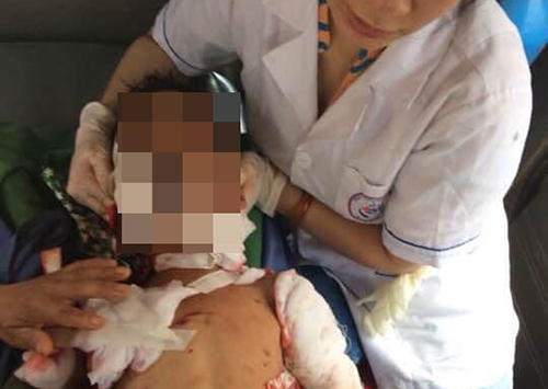 Bé trai bị chó tấn công khiến đa chấn thương - Ảnh: Vnexpress |