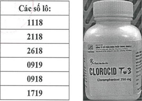 Theo sở Y tế tỉnh Đồng Nai, hiện nay trên thị trường đang lưu hành thuốc viên nén đóng gói dạng lọ Clorocid Tw3 250 mg giả. Trên nhãn thuốc giả có nghi "CLOROCID Tw3 - Cloramphenicol 250 mg" SĐK: VD- 25305-16, các số lô 1118, 2118, 2618, 0919, 0918, 01719.