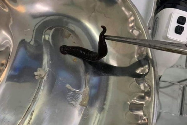 Qua kiểm tra, nội soi các bác sĩ này phát hiện một con đỉa “khủng” đang bám, hút máu trong mũi phải.