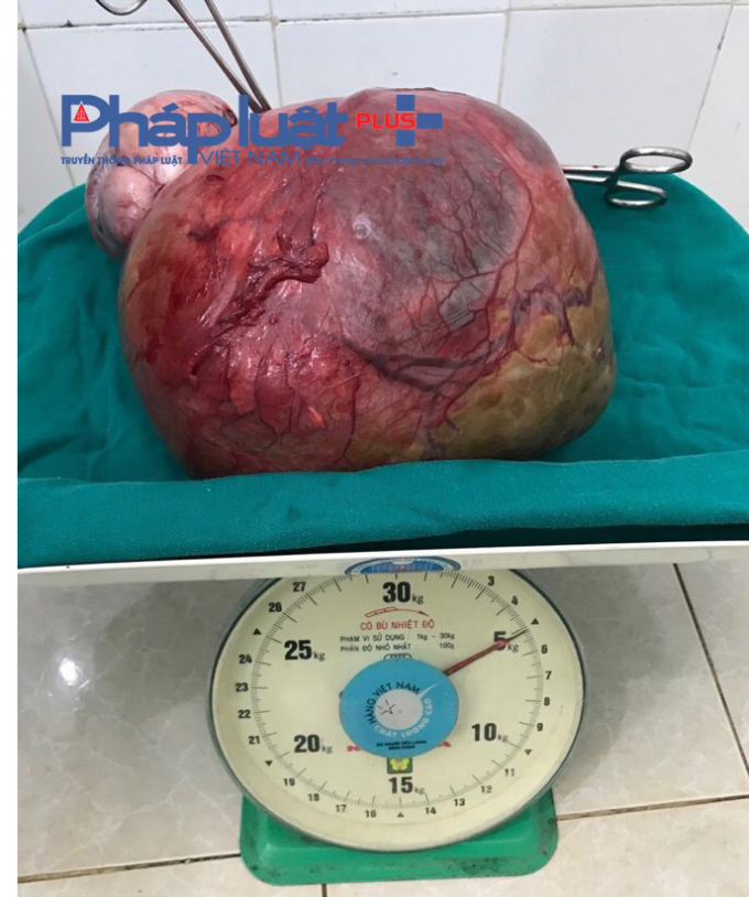 Sau khi thăm khám và dựa trên các kết quả cận lâm sàng, các bác sĩ cho biết khối u trong bụng người bệnh rất lớn, tương đương với bụng của người có thai 9 tháng.