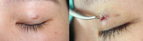 Sau nhấn mí mắt bệnh nhân nổi u như hạt đậu. |