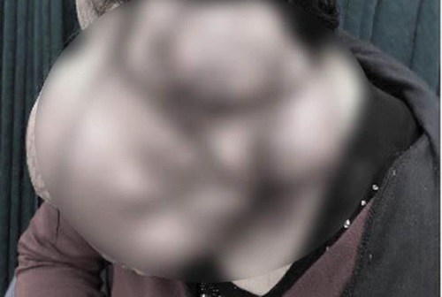 Bệnh nhân T.T.H mang khối u khổng lồ to hơn đầu người suốt 25 năm - Ảnh: Giao thông |