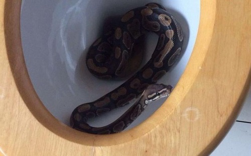 Mở nắp bồn cầu, liền bị trăn phóng ra tấn công