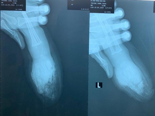 Chiều 3/10, BS Võ Hòa Khánh, Trưởng phòng Quản lý chất lượng BV Chấn thương chỉnh hình TP.HCM, cho biết nơi đây vừa cứu bàn tay trái cùng bốn ngón tay đứt lìa cho bé trai TĐK (một tuổi, ngụ Đồng Tháp).