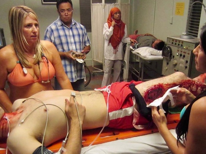 Những ngày gần đây, bức ảnh một nữ bác sĩ mặc bikini khi cấp cứu cho bệnh nhân nam bị chảy máu đang được chia sẻ khắp mạng xã hội khiến nhiều người tò mò, tranh cãi.