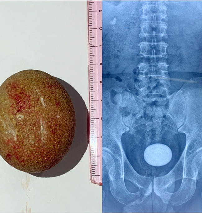 Qua thăm khám, các bác sĩ phát hiện trong bàng quang của bệnh nhân có viên sỏi kích thước khá lớn nên đã chỉ định phẫu thuật để lấy sỏi. Sau phẫu thuật, bệnh nhân tỉnh táo, có thể ăn uống được.